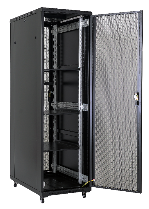 前后单开网孔门 高强度19英寸承重方孔孔条,,,,带U位标识,,可精确调整深度,,方便安装维护使用